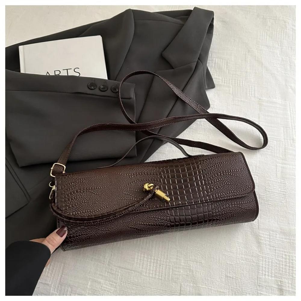 حقيبة ريترو نسائية 2025 بتصميم ريترو أنيق تجمع بين الفخامة والعملية، مصنوعة من بولي جلد التمساح الفاخر لتمنحك مظهراً راقياً ولمسة كلاسيكية عصرية، مثالية للاستخدام اليومي والمناسبات مع سعة مريحة وتنظيم أنيق للأغراض.