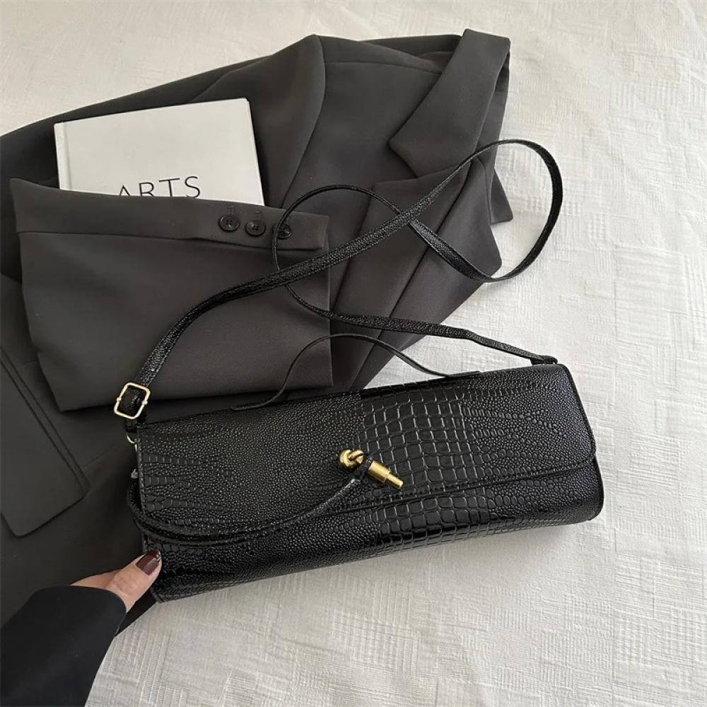 حقيبة يد نسائية 2025 – سوداء أنيقة ريترو من بولي جلد التمساح
