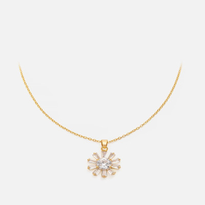 تميّزي بإطلالة أنيقة مع طقم سلسال وحلق باللون الذهبي الفاخر. تصميم لافت بحلية مرصعة بفصوص الزركون اللامعة يمنحك لمسة أنثوية ساحرة.